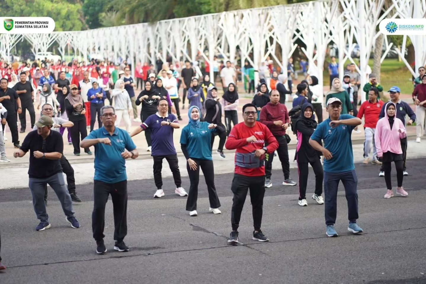 Senam bersama ini merupakan rutinitas yang dilakukan oleh Pemprov Sumsel setiap dua minggu sekali untuk mewujudkan para pegawai yang sehat dan bugar.