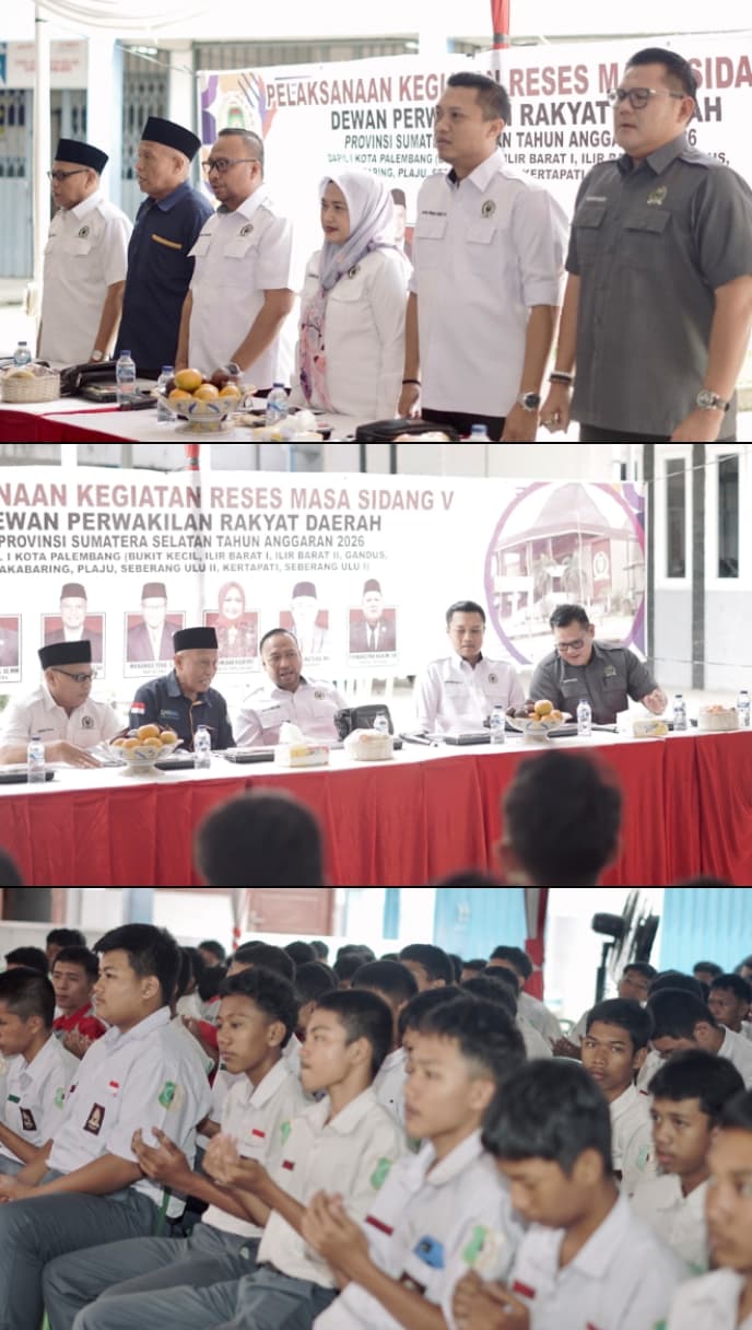 Palembang, DPRD Sumsel menggelar reses pada Senin 16 februari 2026. Reses awal tahun ini digelar disejumlah titik, antara lain di sekolah menengah kejuruan Gajah Mada, dikawasan kota Palembang. Dalam rangka menyerap aspirasi dari masyarakat reses diharapkan bisa mempertemukan langsung masyarakat sebagai pemegang mandat negara kepada anggota DPRD, sehingga pembangunan kedepannya bisa sesuai dengan kepentingan masyarakat dilapangan.
