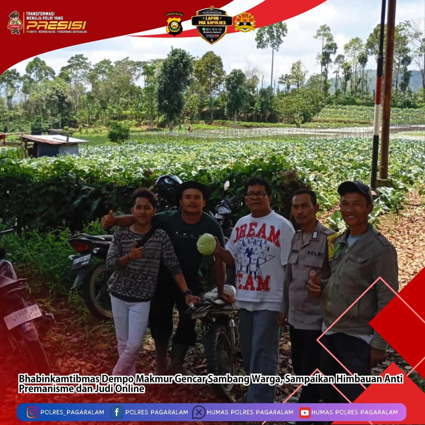Pagar Alam – Pada Minggu, 5 April 2026 sekitar pukul 13.00 WIB, personel Bhabinkamtibmas Polres Pagar Alam melaksanakan kegiatan himbauan kamtibmas kepada masyarakat guna menciptakan situasi keamanan dan ketertiban yang kondusif di wilayah hukum Polres Pagar Alam.